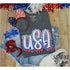 Express your American pride and stay comfortable in style with this woman's 'USA' v-neck graphic t-shirt. Made with soft and lightweight fabric, this t-shirt features an iconic USA emblem and comes in a classic gray color. Show off your patriotism in a timeless look.