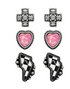 3 Pc. Heart, Bolt, Cross Stud Earrings
