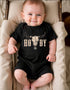 "Yeehaw, little cowboy! Wrangle up some cuteness with our Baby Boy Howdy Steer Head Romper. This romper features a playful design with a cute steer head on the front, perfect for your little one's adventures. Made with soft, durable fabric for comfort and easy movement. Giddy up and get one today!"