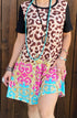 Leopard Printed Dress with Pink and Blue Bottom and Gold Accent