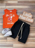 Join the herd in style with our "New to the Herd" tank top and black shorts. This orange tank top features a fun graphic and is paired with comfortable black shorts. Perfect for standing out and making a statement.