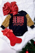 "Our Jesus, Jesus, Jesus Printed Black Onesie is not just another cute outfit for your little one. Made with gold sequin sleeves, it shines with love and divinity. With this onesie, your child will be a shining example of faith and devotion, spreading the message of Jesus wherever they go!"