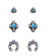 "Rock your style with our 3 Piece Stud Earrings! Featuring an iridescent squash blossom, aztec tribal design, and floral and turquoise stone, these earrings are the perfect pop of color and personality for any outfit. Add some quirky flair to your look with our unique studs!"