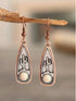 Copper and Burnished Silver Cactus Scene Dangle Earrings with White Turquoise