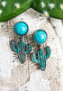 The Arvilla Cactus Earrings combine a western-style design with a patina finish to create an eye-catching accessory with a turquoise stone.