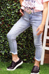 Get ready to rock out in these Girls Light Blue Distressed Skinny Jeans with a frayed hem! They're perfect for any occasion, whether you're heading to school or just hanging with friends. Show off your unique style with these one-of-a-kind jeans.