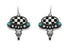 Burnished Silver Steer head Dangle Earrings with Turquoise Stones and Oval Black and White Checkered Stone