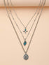 Add some desert vibes to your outfit with this layered silver chain necklace featuring small cactus, Longhorn, and concho pendants. Stay stylish with a touch of the wild, wild west.