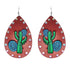 Leather Teardrop Earrings with Rhinestones and Cactus