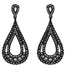 Black Layered Teardrop Earrings with Black Crystals
