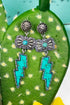Turquoise Lightning Bolt and Bow Canyon Silvertone Drop Earrings.