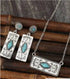 Vintage Western Style Engraved Inlaid Turquoise Pendant with Matching Earrings