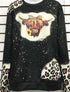 Black Bleached Long Sleeve Shirt with Leopard Print and Highland Cow