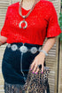 "Sparkle and shine in our Red Sequin Top with Ruffled Sleeves. Perfect for a night out, this top adds a touch of glamour with its sequin detailing while the ruffled sleeves add a playful twist. Stand out in style and be the life of the party! (Only available in red, sorry not sorry!)"