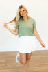Expertly crafted with a rib knit design, this polo top offers a relaxed fit and v-neck for added style. The high stretch fabric provides ultimate comfort and easy movement, while also being moisture-wicking. Available in Sage Green or Blush Pink.