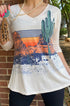 Cactus Western Scene Beige 3/4 Sleeve V-NeckTop