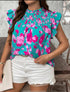 This blouse screams "vacay" vibes with its flowery design. Perfect for plus-sized women, this breezy top is a summer staple. Embrace the warm weather in style and comfort with this playful top.