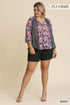 Women’s Black and floral mixed print sheer cape top with front tie.