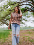Saddle up for some wild style with our Oversize Wild Western Print Top! This unique top features a bold western print that adds a touch of edgy charm to any outfit. With its oversized fit, it's not only trendy but also comfortable to wear. Yeehaw! (Sorry, cowboy hat not included.)