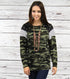 Women’s Black and Camouflage Sequin and Stripes Long Sleeve Top