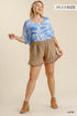 Plus size- Women’s Linen Blend Elastic Waist Ruffle Hem Shorts with Pockets