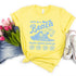 Jump on the beach wave with this sunshine-yellow women's t-shirt featuring a cool blue graphic declaration: Life's A Beach!