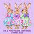 Hop into style with the 3 Bunnies She Is More Precious Graphic Tee! This fun tee isn’t just a shirt; it’s a cuddle in cotton! Perfect for making a statement that’s as sweet as bunny ears, it’ll have you feeling like the precious gem you are! (Warning: may cause spontaneous compliments!)