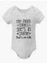 This white onesie features a hilarious graphic that is sure to bring a smile to anyone's face. With a snap closure for easy changing and a playful phrase that pokes fun at Mom's authority, this onesie is the perfect blend of humor and practicality. A must-have for any baby's wardrobe!