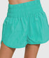 Get ready to hit the track in style with our Smocked Waist Track Shorts! These vibrant turquoise shorts not only make a fashion statement, but also feature a functional mesh pocket on the back of the waistband. With a smocked waist and comfortable lining, these shorts are perfect for any athletic activity Or just a day of running around.